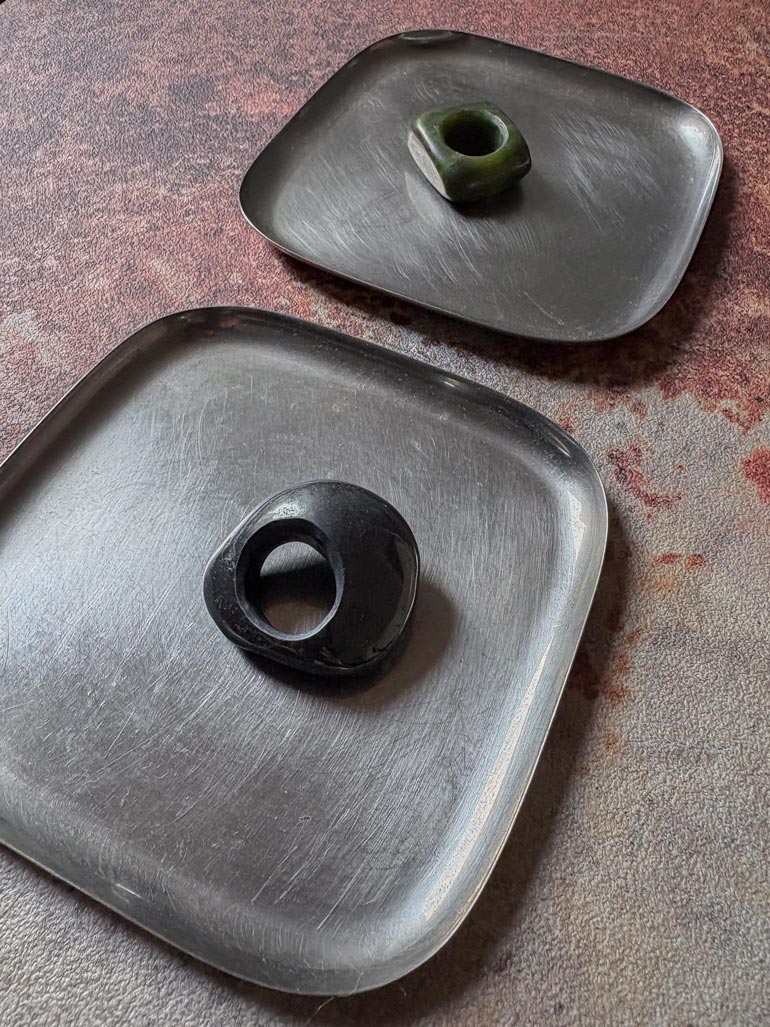 Anillo tallado en hematite natural. Se convierte en un colgante.