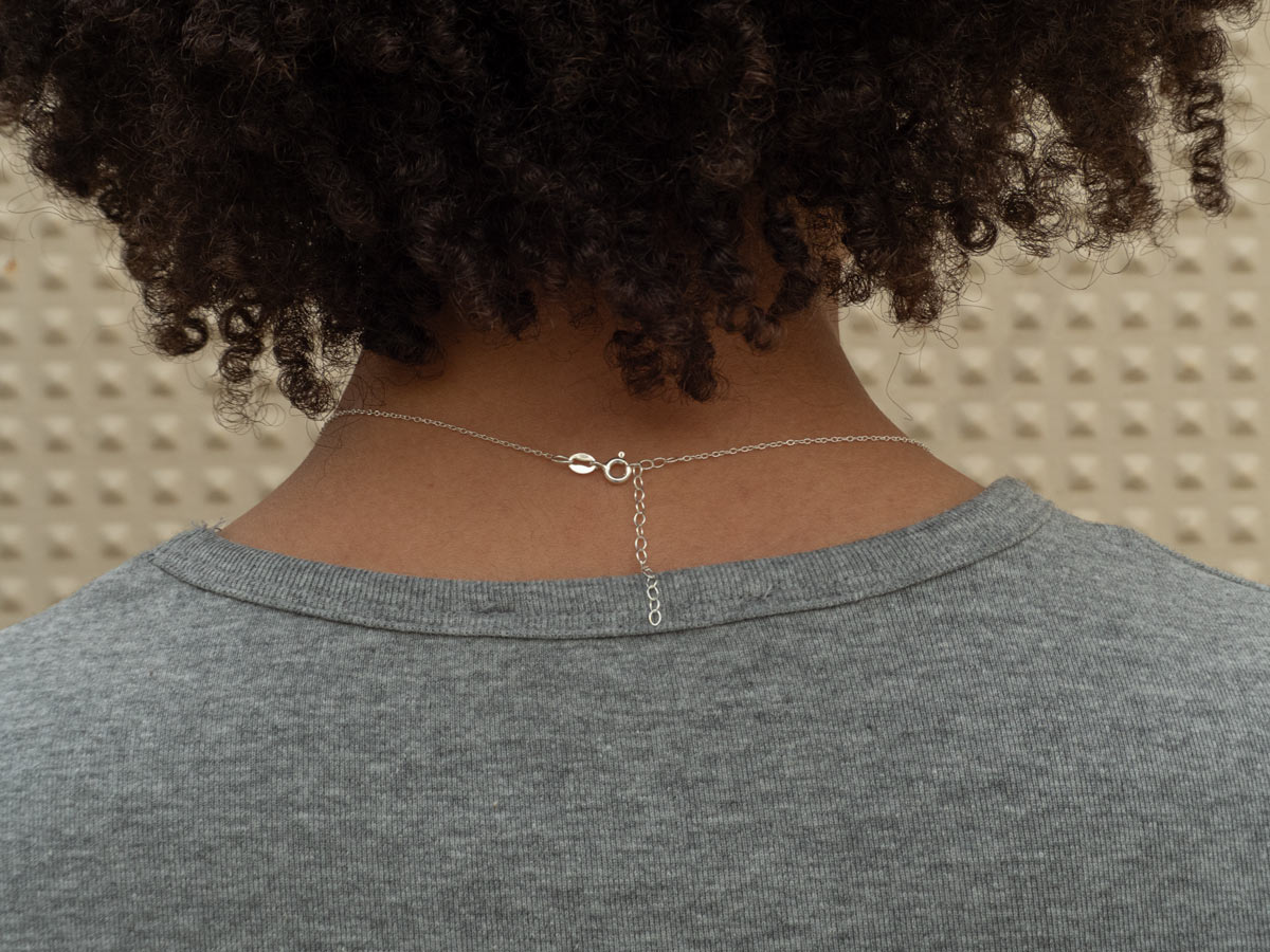 Este collar de cadena de plata, con su colgante de mineral tallado, aporta una luz intensa y una fuerza única. Una pieza sencilla, elegante y llena de energía para elevar cualquier look.